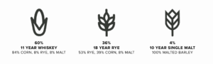 36% of the blend is a Canadian rye aged in ex-bourbon casks for 18 years. The liquid is then segmented into thirds and finished for 6 months in either port, Spanish vermouth, or sherry barrels for added layers of dark red fruit, raisins, and oxidized wine. The final product is a rye whose spice is brilliantly countered by deep cherry, prune, and fig notes.